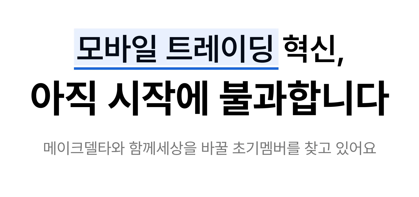 2만 명의 직장인 트레이더가 사용하는 ‘트레이더캣’으로 모바일 투자 시장을 혁신하고 있는 팀 메이크델타입니다.
